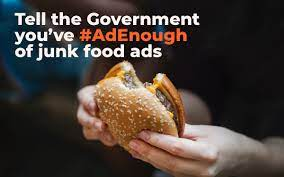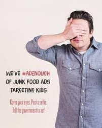 영국도 정부의 아동 비만 전략에 맞춰 2018년 비영리 자선 단체 Sustain의 Children's Food Campaign과 유명 셰프인 Jamie Oliver이 함께 아동 대상의 정크푸드 마케팅을 억제하기 위한 #AdEnough 캠페인을 실시했다. #AdEnough 소셜 미디어 캠페인은 토요일 밤 TV 쇼 중 피자와 탄산 음료, 광고판 및 스포츠 후원 등에 아이들이 좋아하는 만화, TV 및 영화 캐릭터가 과자, 케이크, 비스킷 및 건강에 해로운 패스트푸드를 마케팅 하는 데 사용되는 것을 멈춰야 한다고 주장했다. 캠페인은 아이들이 사용할 수 있는 유일한 효과적인 광고 차단기를 상징하기 위해 눈을 가리고 셀카를 찍고, #AdEnough 해시태그를 사용하여 소셜 미디어에 게시하여 대중에게 캠페인에 대한 지지를 호소했다. 저녁 9시 이전 염분, 지방 또는 설탕 함량이 높은 음식과 음료에 대한 TV 광고 금지/ 학교 외부, 소셜 미디어, 광고판, 버스 정류장, 스포츠 경기장에 광고 제한/정크푸드 홍보 위해 만화 캐릭터와 유명인 사용 금지/구매 장려하는 저렴한 판촉물 금지 등으로 정부는 2030년까지 아동 비만을 절반으로 줄이겠다는 목표를 세웠다.